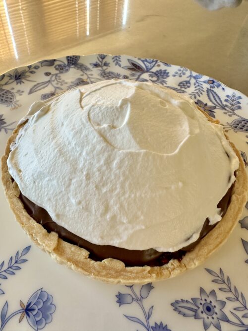 チョコレートの扱いもしっかり覚えましょう。上はホイップした生クリームで仕上げます。